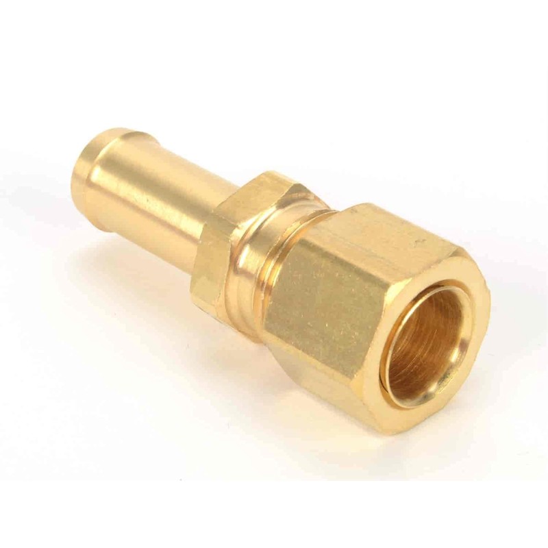 Captive Nut Adapter Fitting3/8" Hard Line x 3/8" Hose BarbUnique integral ferrule/tube nut compression fittingBrassMade in the USA