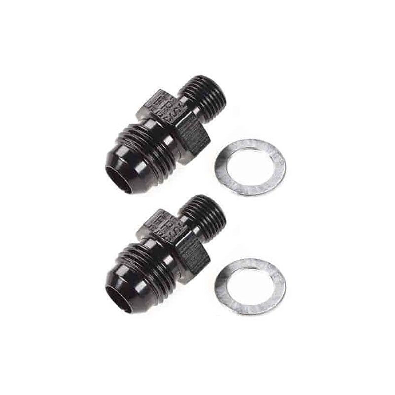 JEGS Transmission Fittings | 1/8 “ NPSM x -6AN | Includes 2 Fittings And 2 Crush Washers | Made In USA | Black Anodized Aluminum