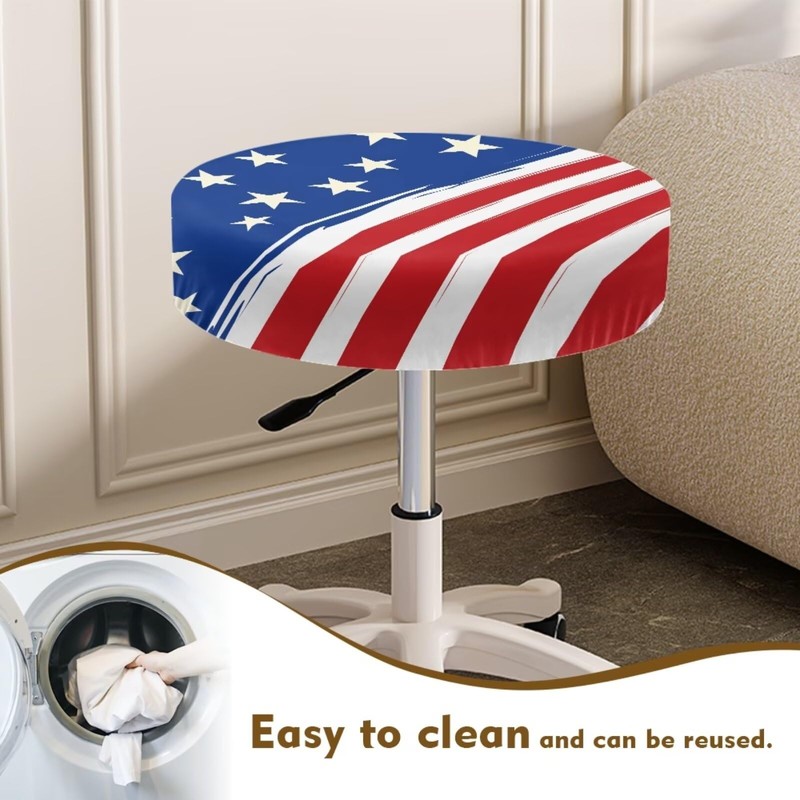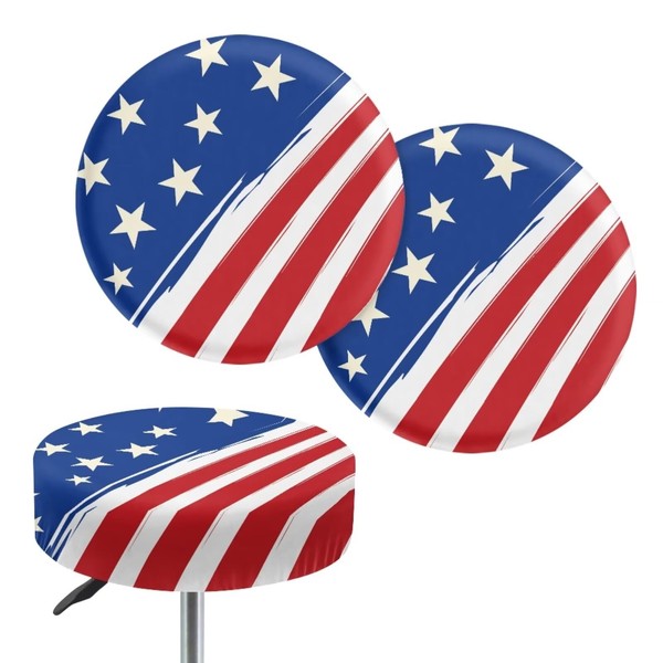 Jeiento American Flag Stool Covers 4th of July Independent Day Decor Round Protective Cover for Round Barstools Washable Elastic Patriotic US Flag Bar Stool Seat Covers,Size 14"-16"