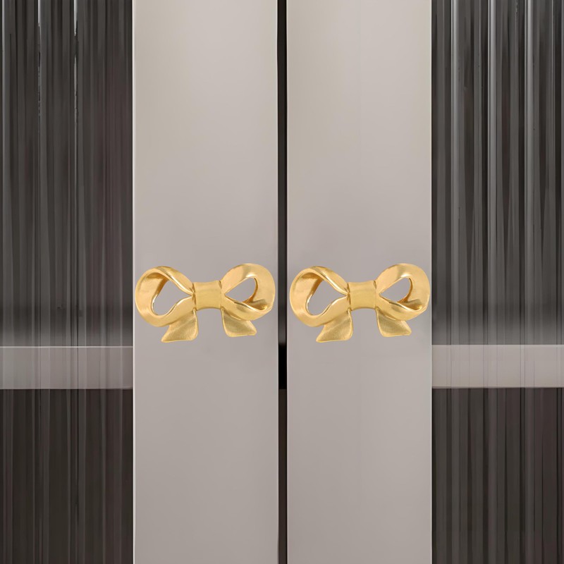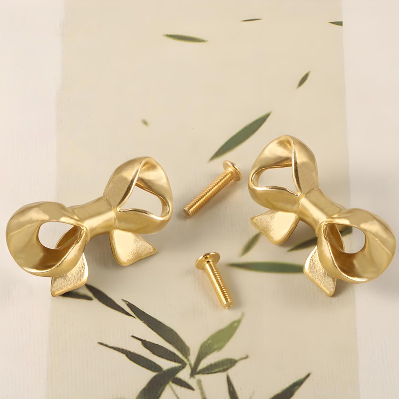 Elevate your space with JEIYMIUW's exquisite gold bow knobs! Crafted from premium solid brass, these stunning 2.2×1.25-inch brushed brass cabinet pulls feature a lifelike bow design that adds instant sophistication to cabinets, dressers, and wardrobes.