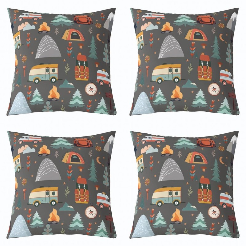 jejeloiu Happy Camping Throw Pillow Covers Set of 4 Kids Boys Girls 18 x 18-Inch Travel Bag Tent Print Cushion Case Outdoor Travel Decor Pillowcase Camping Gifts Indoor Outdoor Travel Trailers Themed