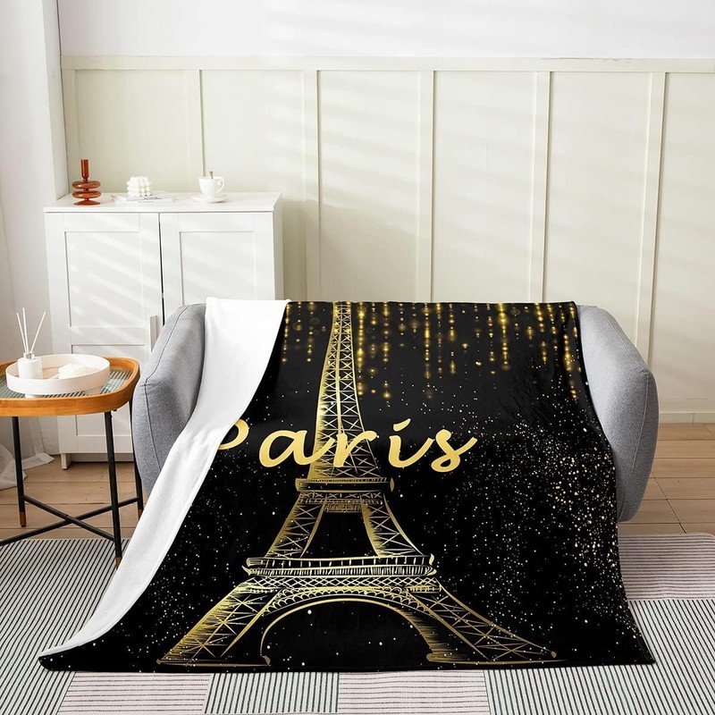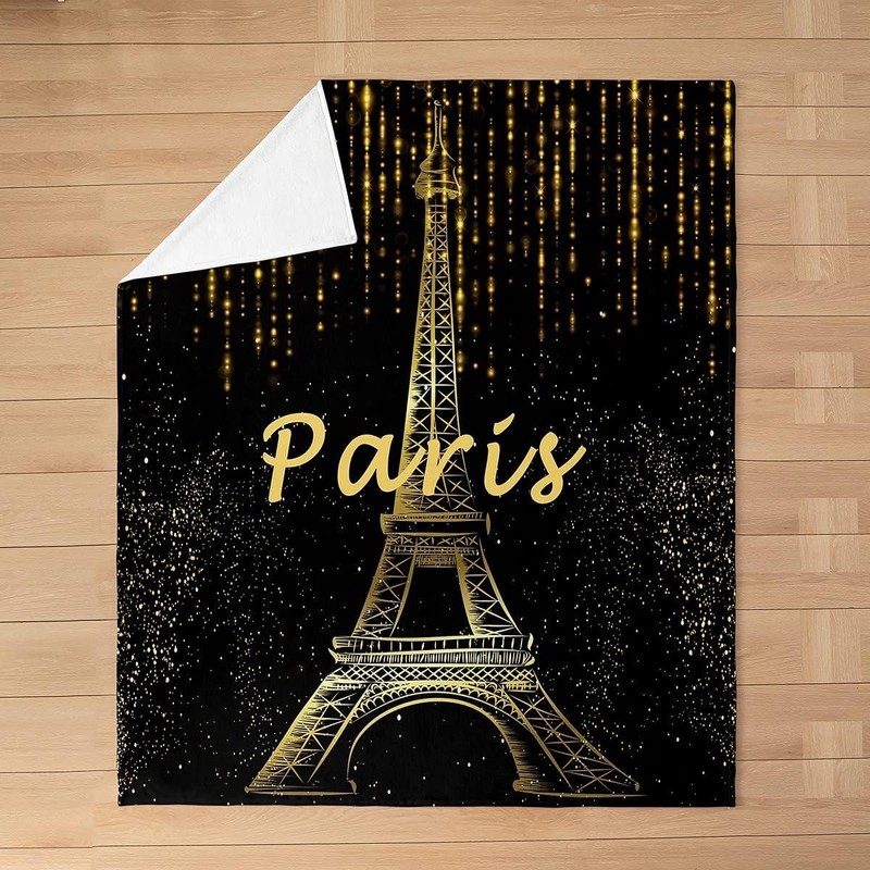 jejeloiu Paris Tower Flannel Fleece Blanket Golden Eiffel Tower Winter Blanket Decorative Romantic Paris Decor Plush Throw Blanket, Valentines All Season,Bed Blanket Throw 50"x60"