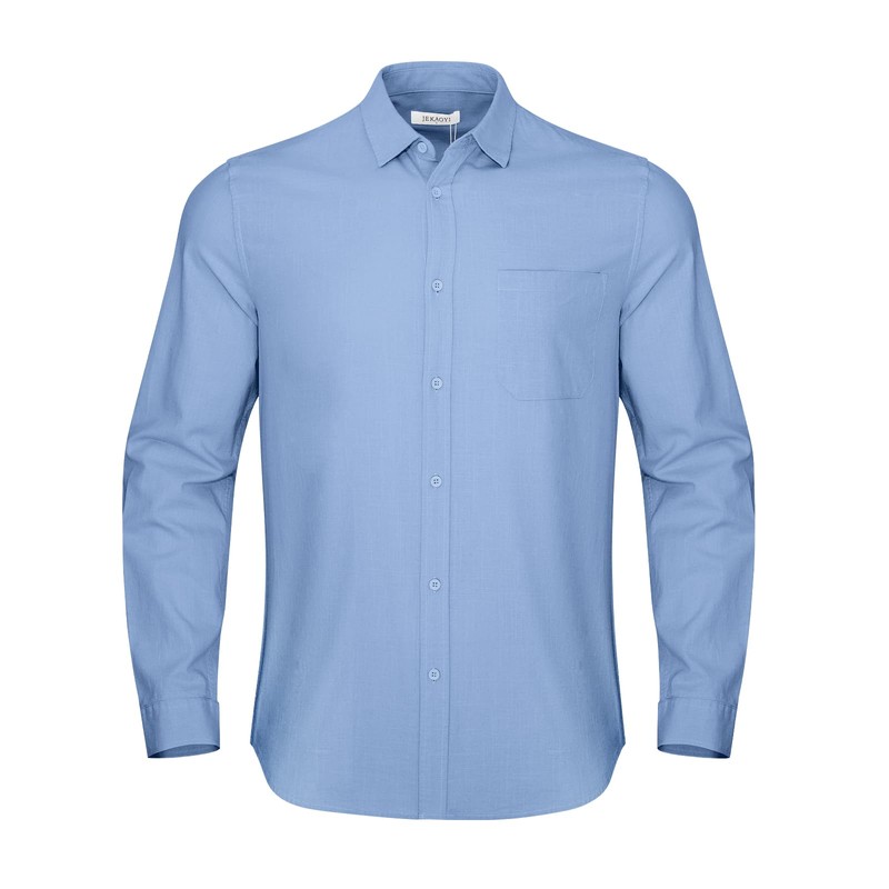 JEKAOYI Button Down Linen Shirts for Men Casual Long Sleeve Regular Fit Cotton Beach Shirts with Pocket Blue