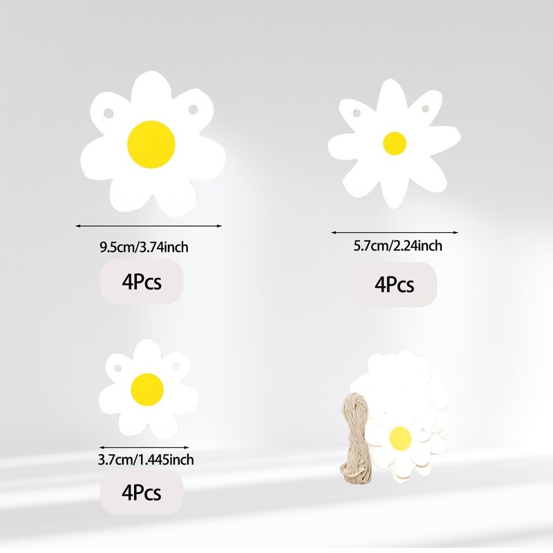 - Package Content: You will receive 4 pieces of daisy party banners, each banner has 12 daisy cutouts and comes with a 16.4 feet/5 m long ribbon, ideal for party or home decoration.