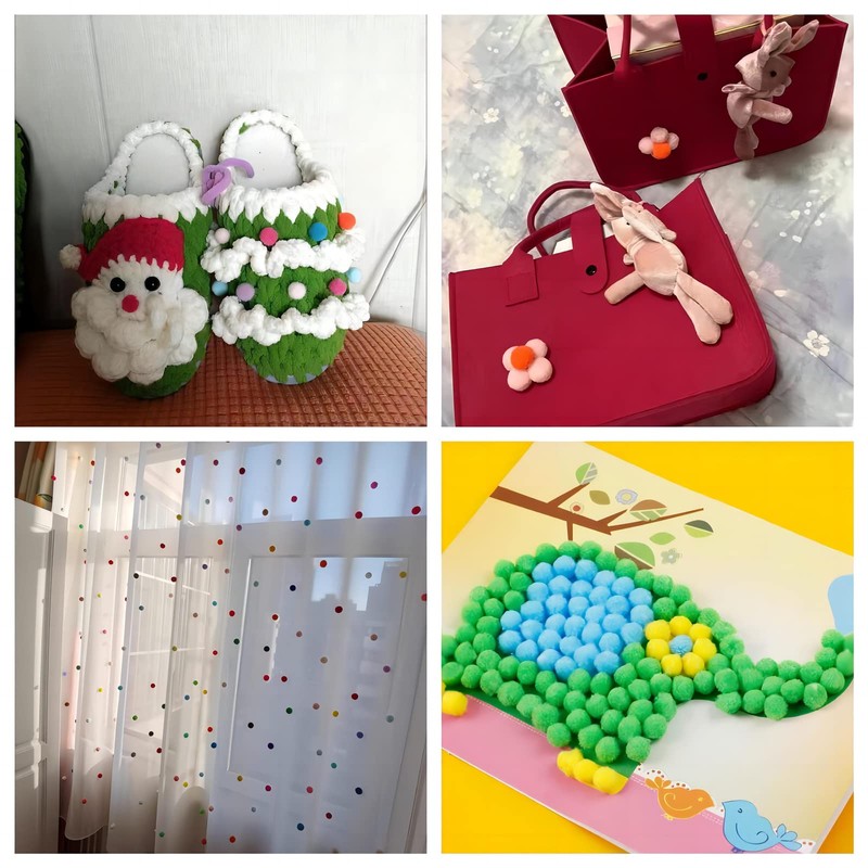 - Unfold creativity: the colourful pompoms are perfect for DIY crafts such as garlands, necklaces, pendants, dress decorations, etc. They can be used for different occasions such as weddings, home decorations.