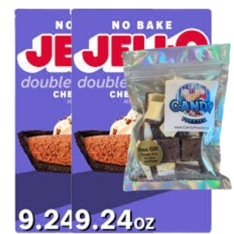 Jel-0 Dessert Kit No Baking with Crust Mix & Filling Mix 9.24 oz Box (Pack of 2) Includes Candy Freezer Freeze Dried Ice Cream Bites (Double Chocolate Cheesecake) Candy