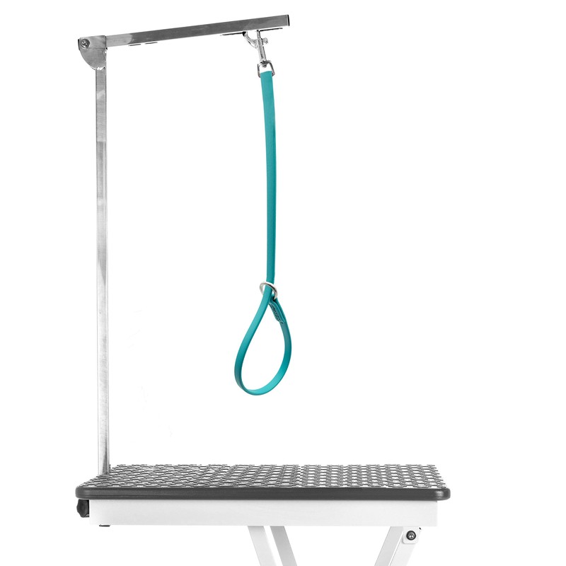 The dog restraint loop safely and securely holds the pet's head or haunches on the dog grooming table or in the tub during grooming, bathing and drying. It is an ideal solution for keeping dogs standing in comfort and helps control overly excitable pets from excessive moving.