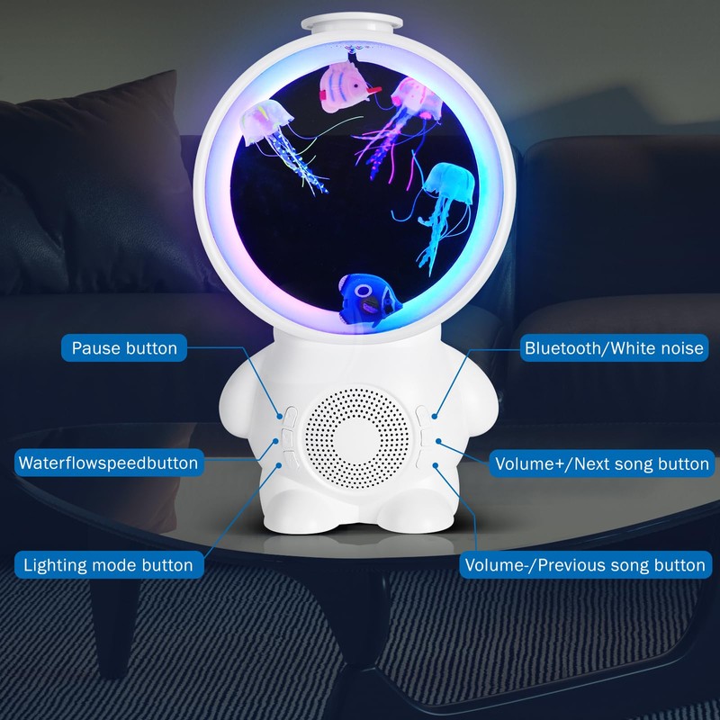 - 🪼【Relax Mood Lamp】Our jellyfish lamp creatively combines astronauts and bubble lamps. The realistic jellyfish move in the lamp, accompanied by the charming color-changing light, creating a beautiful, quiet, peaceful and soothing ocean atmosphere, which helps For reducing stress and anxiety. Astronaut jellyfish lamp is ideal for children, adults and seniors with special needs, including dementia, ADHD and autism. This is a very considerate companion lamp