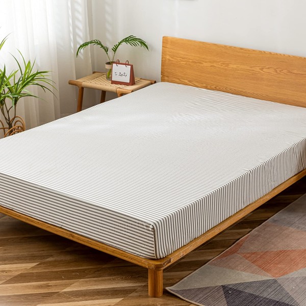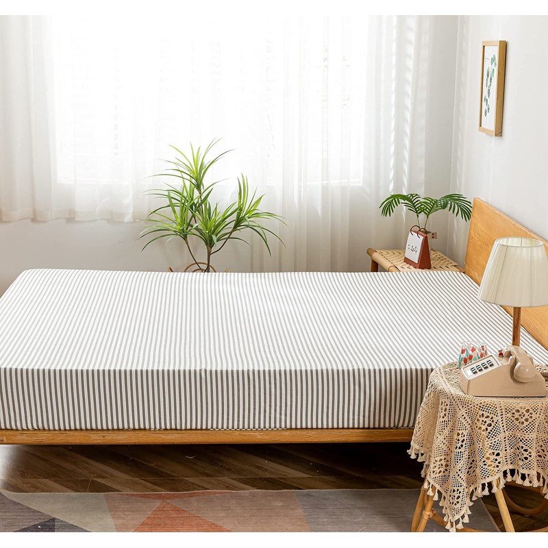 - CLASSIC TAILORED LOOK WITH DEEP POCKETS: Fully elasticized Fitted Sheet with 16 inches deep pockets is generously sized to fit deep and pillow-top mattresses. White Fabric with Grey Stripes, Simple Style Farmhouse Bedding Set gift idea for teens, boys, girls, men or women.