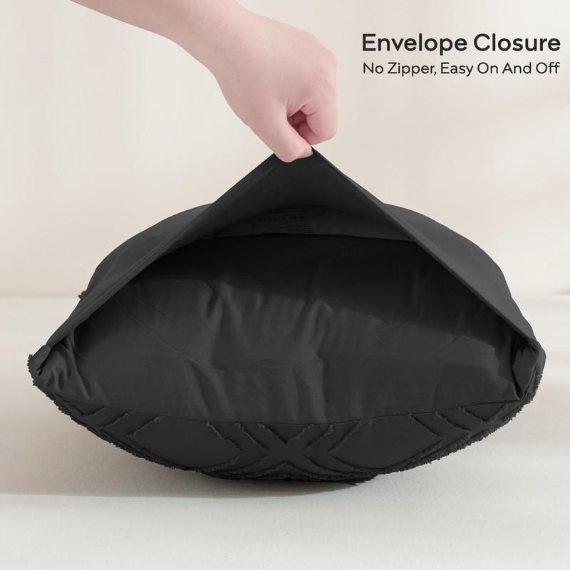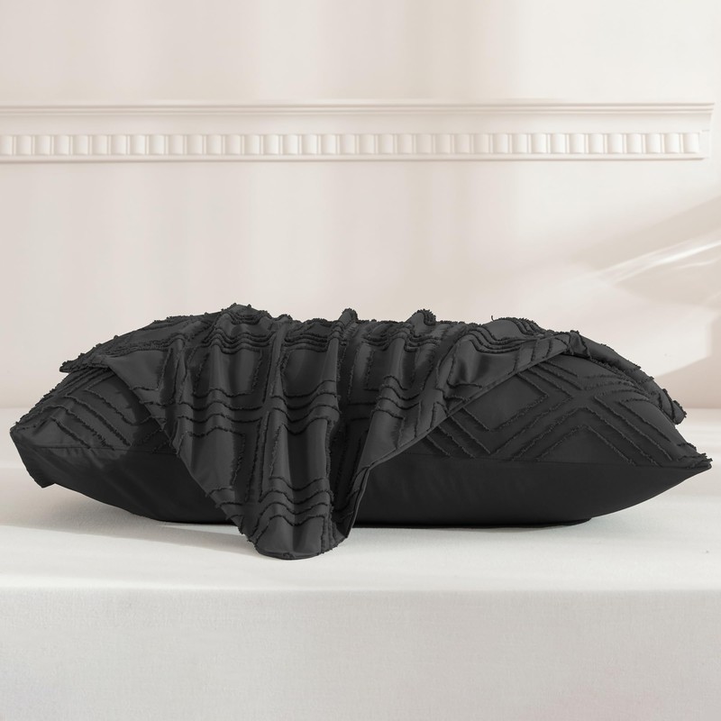 JELLYMONI 2 Pack Black Pillowcases King Size, Soft Microfiber Geometric Tufted Pillow Covers with Envelope Closure (Pillows are not Included)