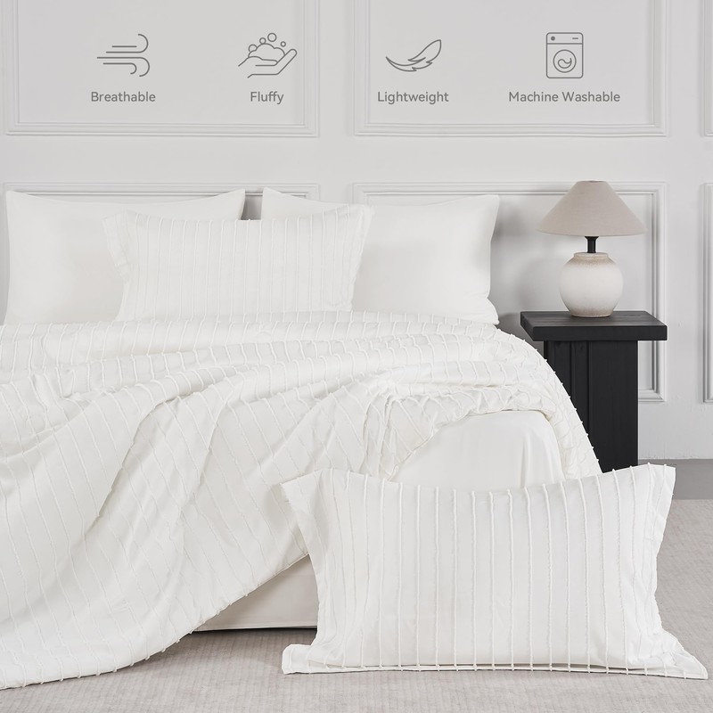 - Thoughtful Design: The comforter set includes eight corner ties for a snug, secure fit and circular stitching that locks in the whole-piece filling, ensuring it stays fluffy, stable, and breathable through every wash, for a cozy, long-lasting sleep experience.
