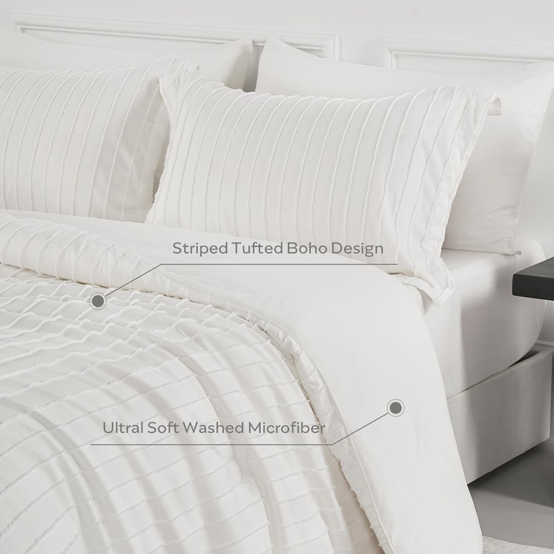 - Premium Material: Our bedding is made from washed microfiber with a jacquard texture, offering softness, breathability, and lightness for a great sleep. The comforter's ultra-soft alternative microfiber filling is perfect for those with allergies. The striped jacquard design adds a bohemian touch to enhance your bedroom decor.