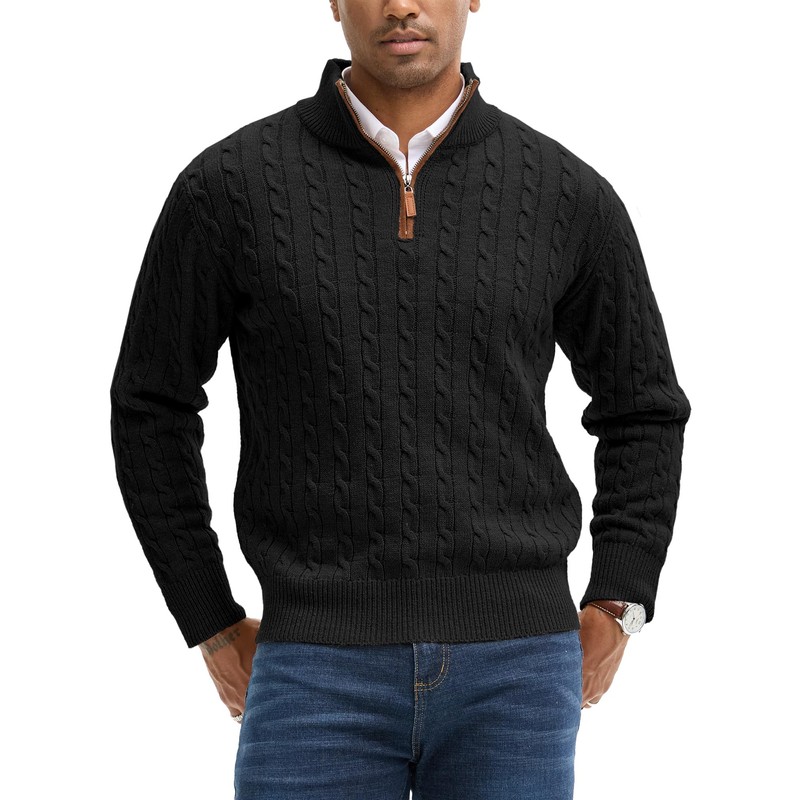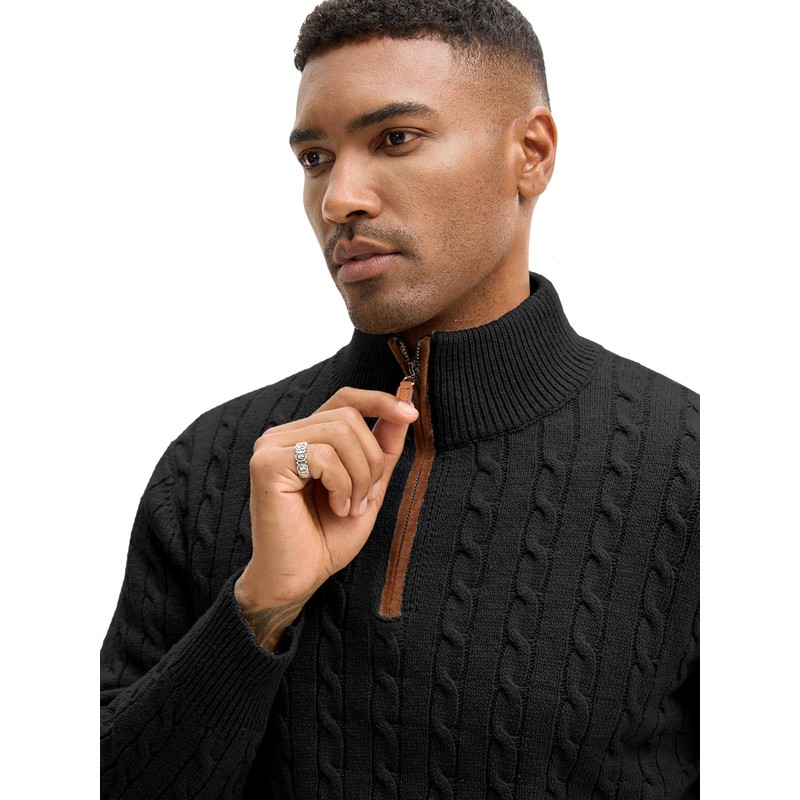 JEMLDL Men's Quarter Zip Sweater Cable Knit Sweater Casual Mock Neck Sweater Lightweight Wool Pullover Sweater Black XL
