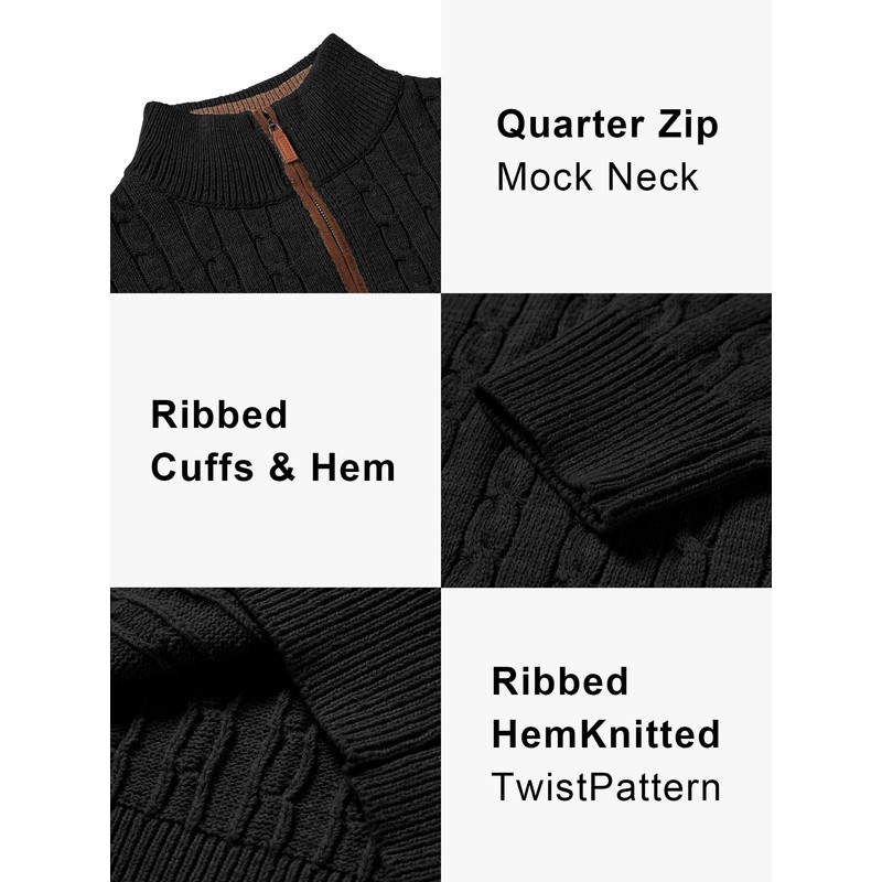 - Classic Design:The men's zipper sweater features classic zipper closure for smooth and fluid operation; the tight ribbed cuffs and hem provide lasting warmth to the body; the exquisite cable knit texture adds extra texture and fashion.