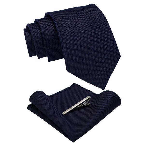 JEMYGINS Men's Classic Cotton Checked Tie Clip Set with Pocket Square Multi-Coloured, navy