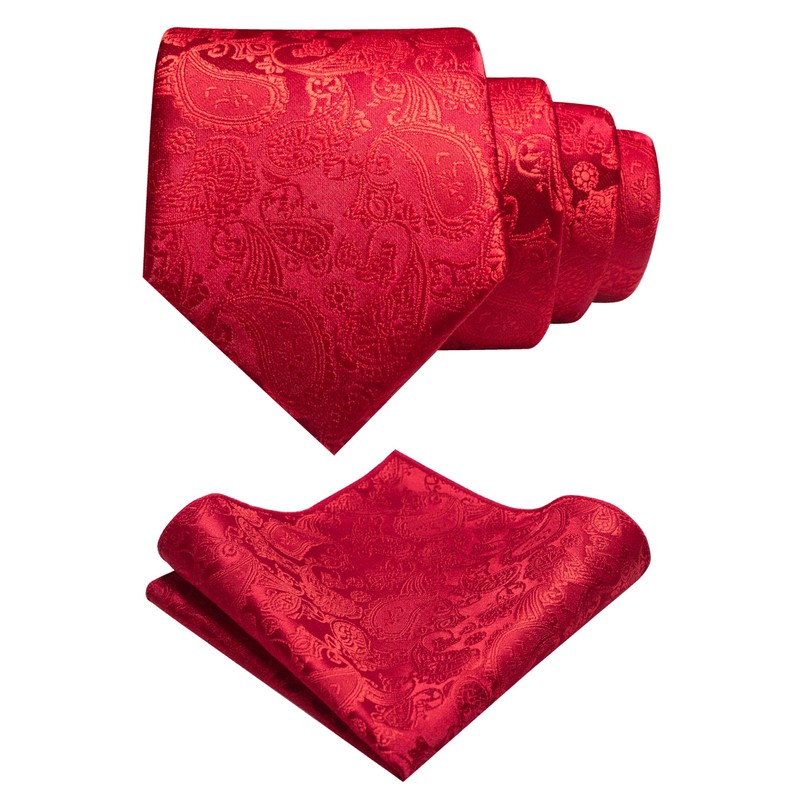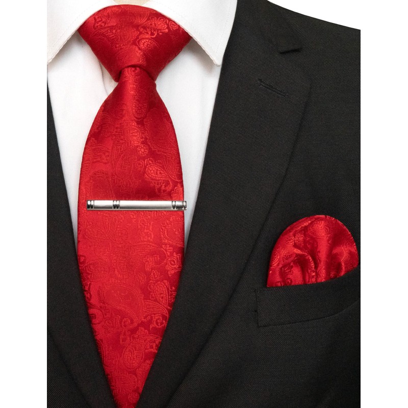JEMYGINS Mens Red Paisley Necktie and Pocket Square with Tie Clip Sets (red2)