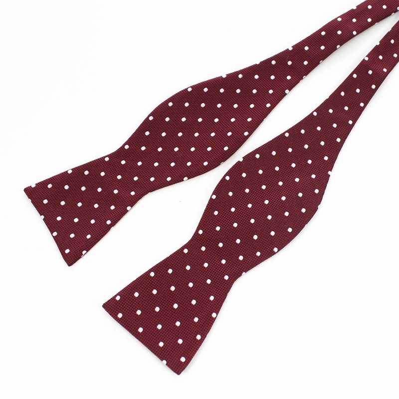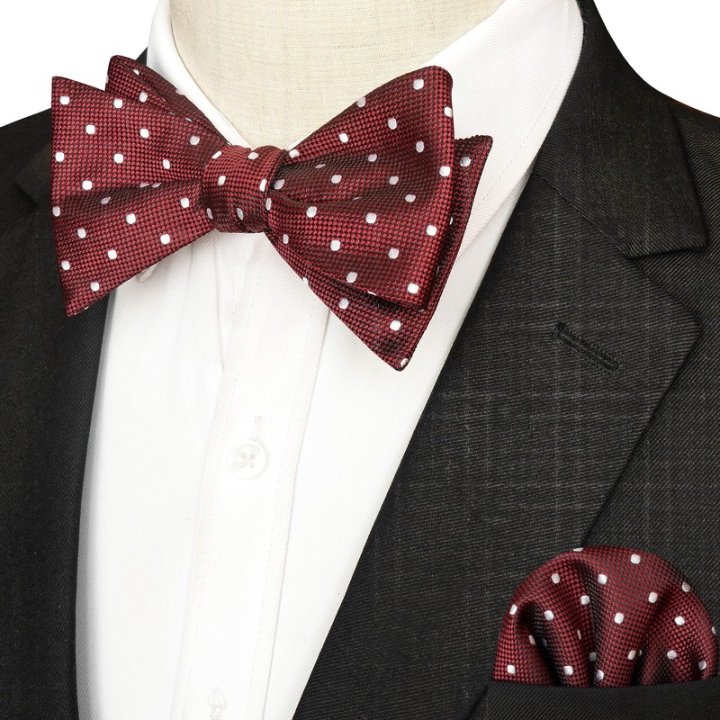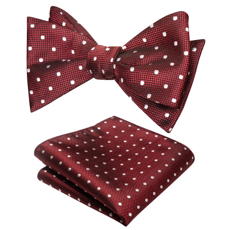 JEMYGINS Mens Self Tie Bow Tie and Pocket Square Set (burgundy dot)