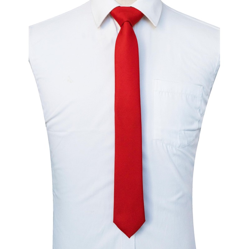 JEMYGINS Slim Men's Matte Tie Plain in Various Colours 6 cm, red