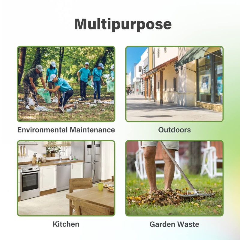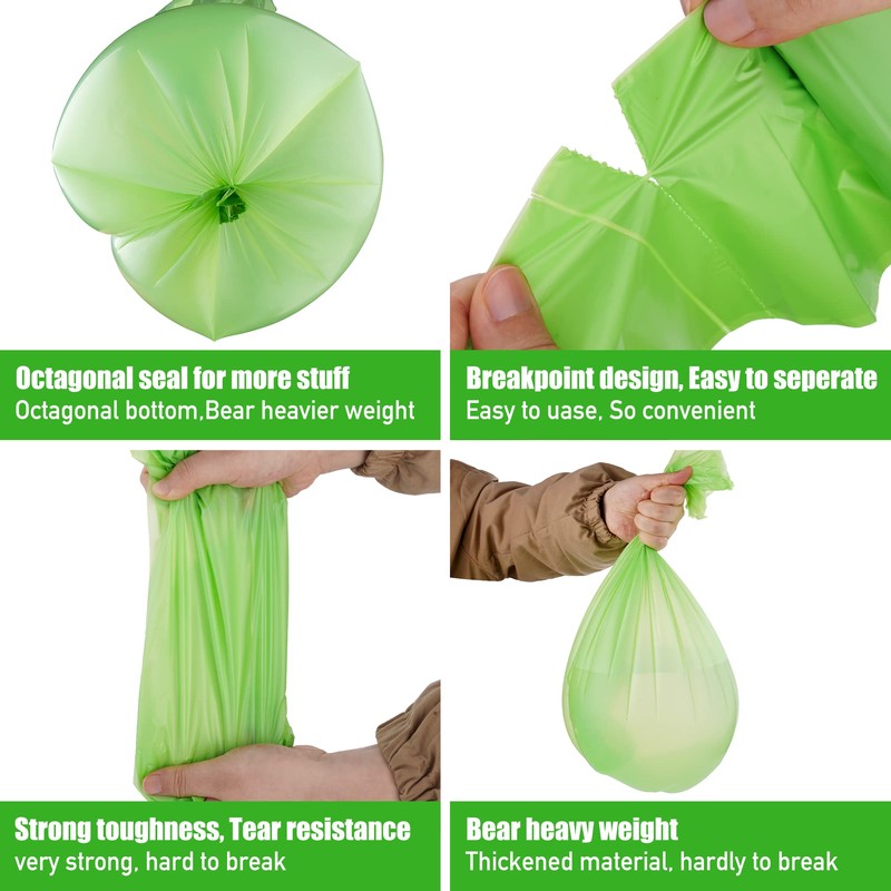 - MULTIPURPOSE Our biodegradable waste bags are odorless, leak proof, with carry handle, strong. They provide the perfect fit for kitchen waste, office waste, bathroom, bedroom, cat litter bags and baby waste bags.