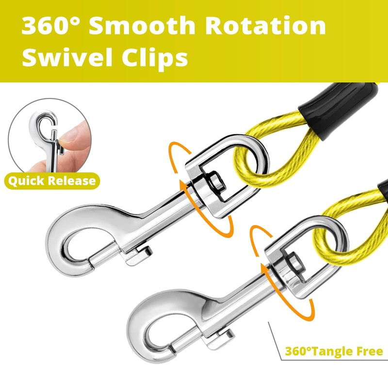 - 360° Tangle-Free Swivel Clips: Our dog lead comes with zinc-alloy swivel clips and thick steel rings, allow smooth 360° rotation while preventing tangling or escape, ensuring pets roam freely without compromising security.