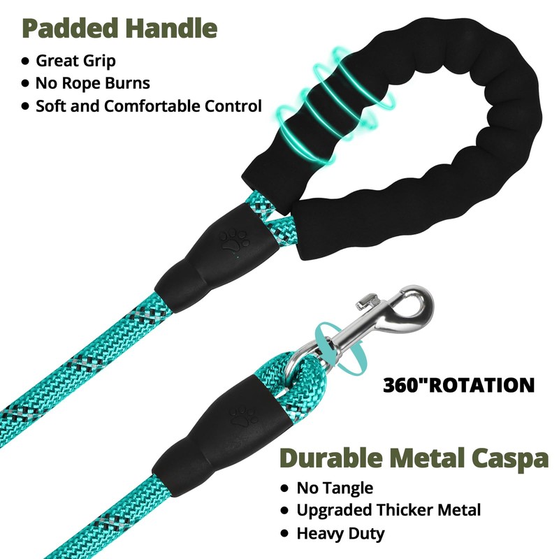 - 🐶Comfortable padded foam handle:ergonomically designed non-toxic soft padded handle for extra comfort,which provides a firm grip.Enjoy the feeling walks with your dog and protects your hand from rope burn for amazing comfort and control.