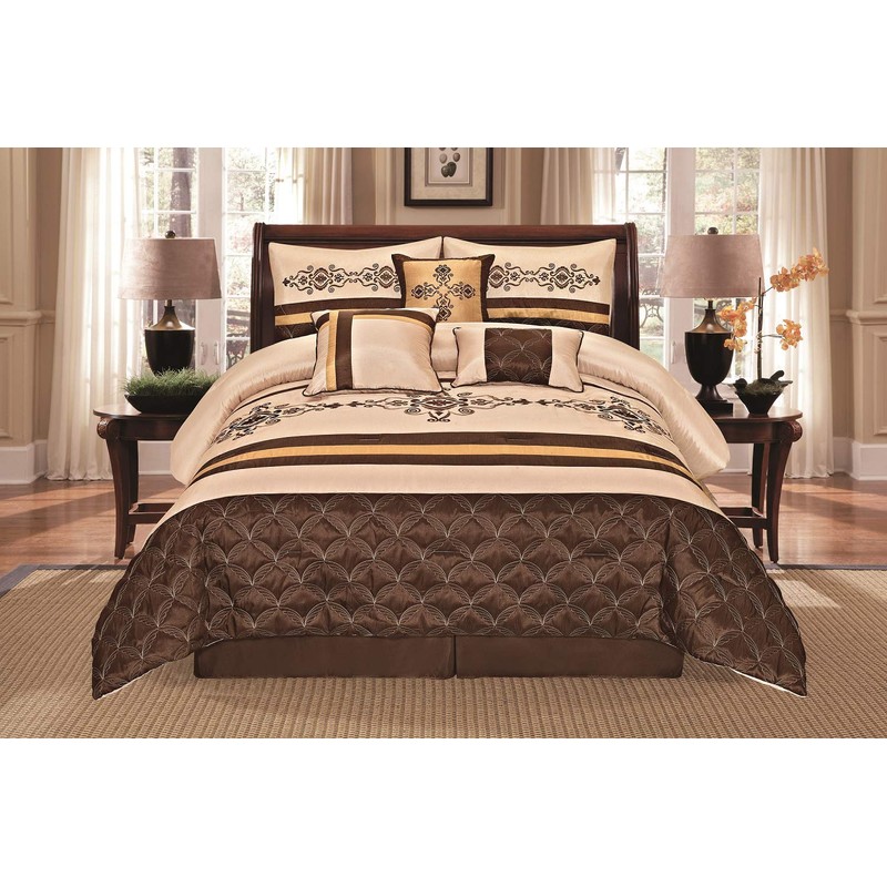 Beautifully embroidered Comforter set. Elegant design, Beige Brown and Gold comforter will make your room/bed look neat and clean. 7 piece set will make your bed look complete. buy with confidence