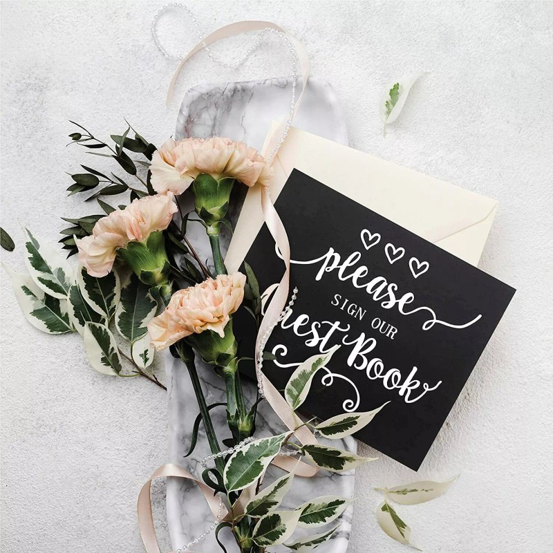 JennyGems Guestbook Sign, Guest Book Table Sign, Wedding Reception Decor (Black)