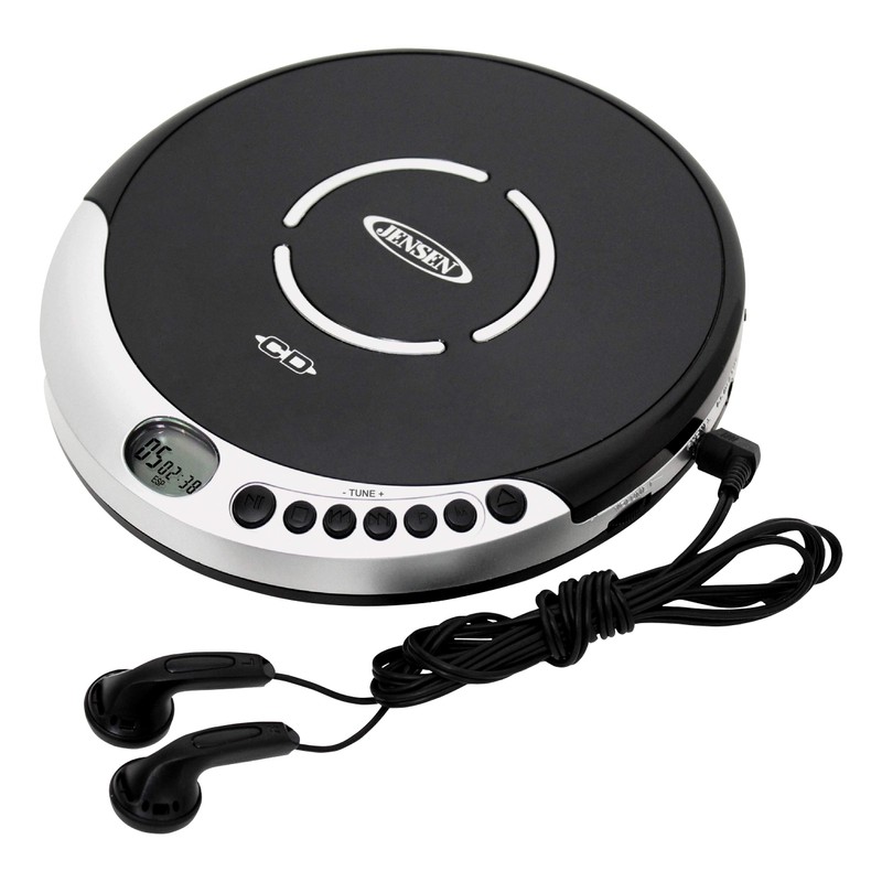 Jensen CD Portable Personal CD Player with 60 Seconds Anti-Skip Protection, FM Radio & Bass Boost + Stereo Earbuds - Black