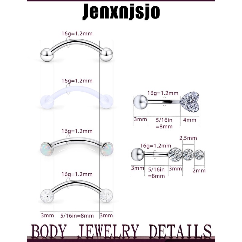 Jenxnjsjo Eyebrow Rook 16g Piercing Jewelry Rings for Women Vertical Labret Lip Hood 16 Gauge Curved Barbell Snug Earrings Belly Button Snake Frog Eyes Vch Bridge Cartilage Daith Surface Anti Tragus