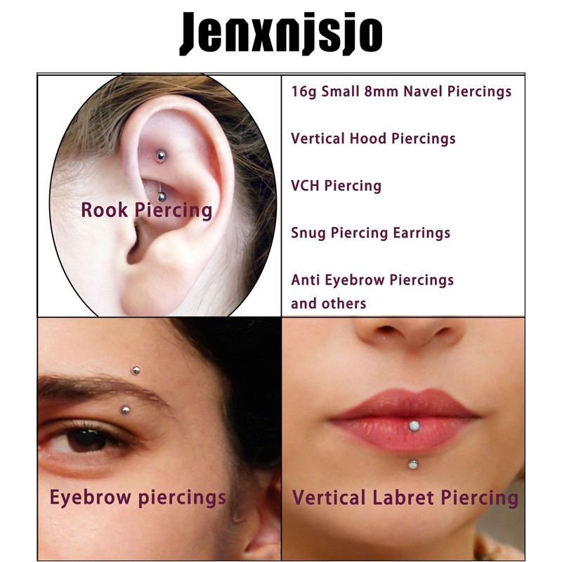 - SUITABLE💝 The Ends on Both Sides can be Easily Screw in and out, Convenient for Wearing, Suitable as Eyebrow / lips / Ear Rook Cartilage Helix Daith Tragus Piercing etc. Making You More Attractive.