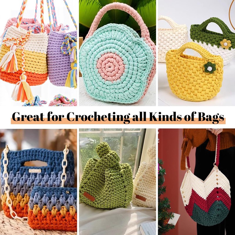 - Wide Applications These fabric craft yarns are great for crocheting, suitable for crochet all kinds of bags (such as handbags, shopping bags, purses), storage baskets, organizers, rugs, slippers, flowers, coasters and other crafts.