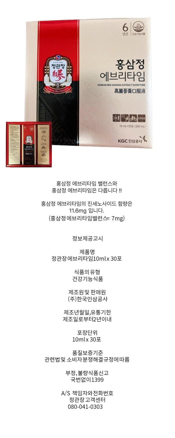 상품명   정관장 홍삼정 에브리타임 10ml 30포 / 기본