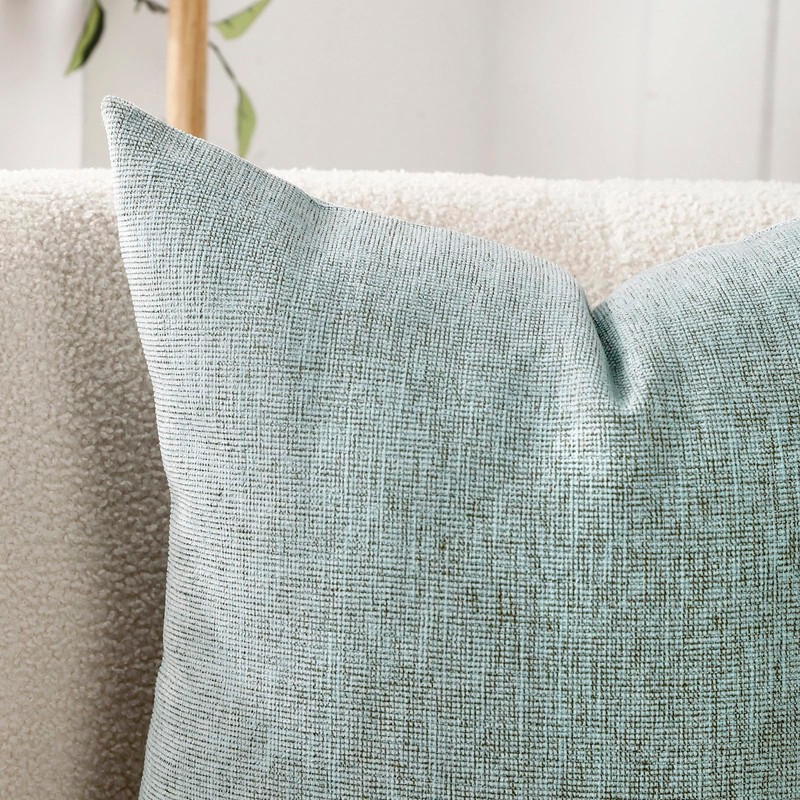 Jepeak Decorative Throw Pillow Covers Pack of 2 Chenille Cozy Modern Concise Cushion Cases for Bedroom Sofa Couch Home Decoration, Lightcyan+brown Thread, 22 x 22 Inches