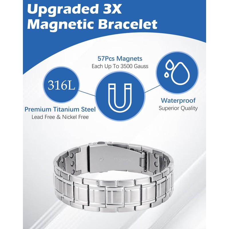 - 👍Premium Titanium Steel👍: Crafted Magnetic Bracelet For Men, Made of High Quality 316 Titanium Steel, Comfortable and Lightweight to Wear, Non-allergic, Scratch Resistant, Allows You to Get A Best Quality Bracelet For The Minimal Investment