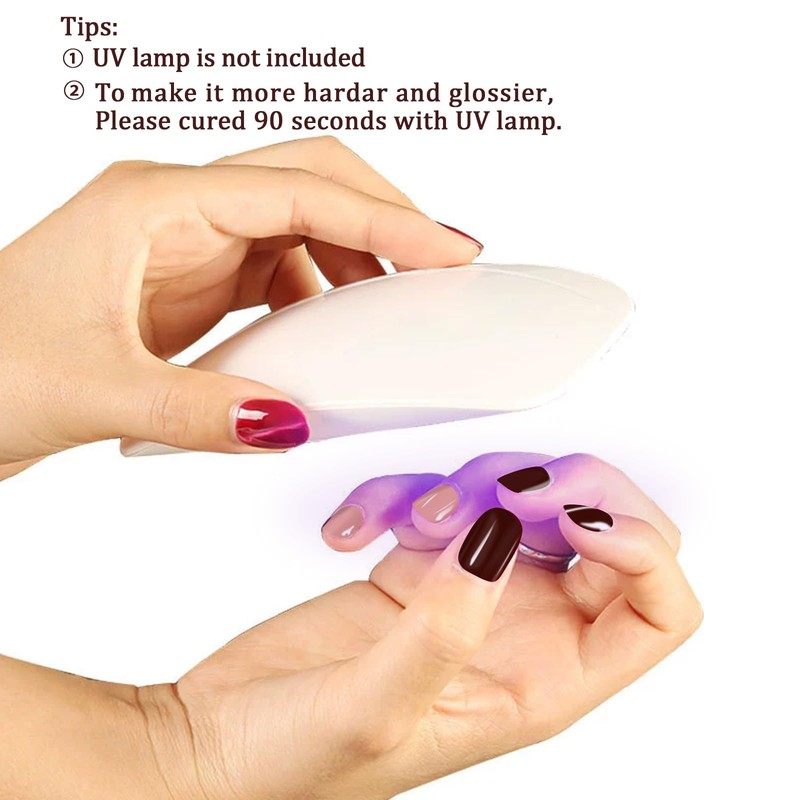 - Easy to Use - Use a clean cotton pad to clean the nail surface thoroughly, ensuring it is dry and free of moisture. Select an appropriate nail tip and attach it to the nail. Press down on the nail tip from the middle to ensure it adheres completely. Trim off any excess nail tip using scissors or a nail clipper. Use a UV lamp to cure for 40-60 seconds until it hardens. Gently file the nail tip to shape it as desired.