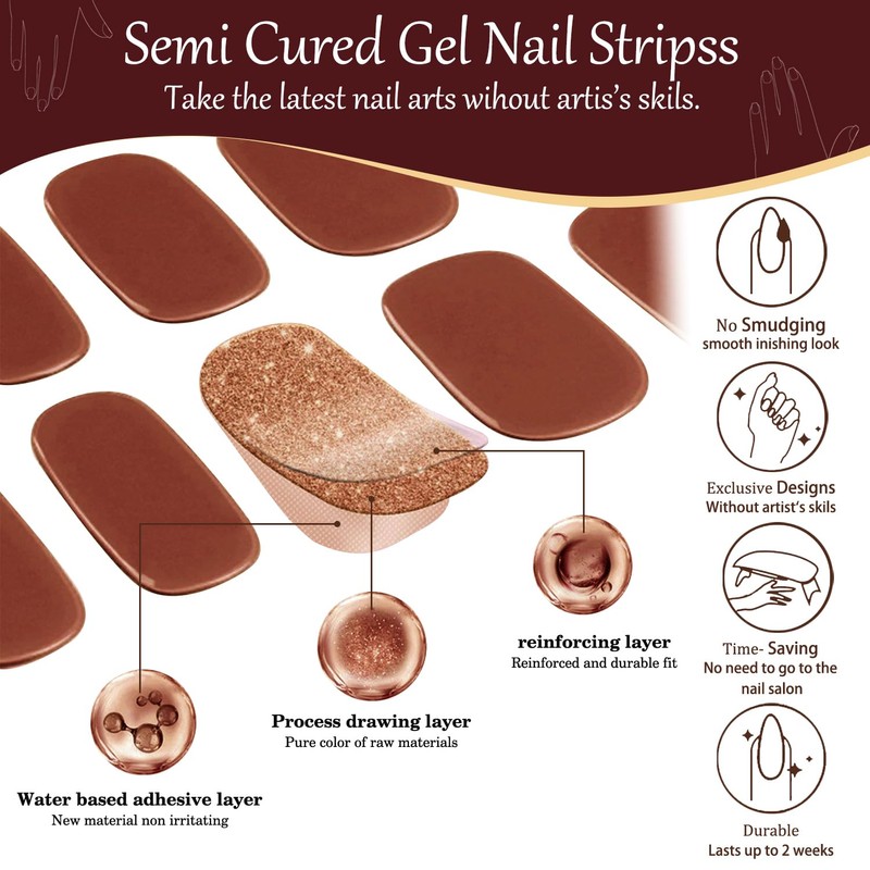 - UV Semi-Cured Technology - Our gel wraps are made from a unique, light-sensitive UV gel that is semi-cured for optimal flexibility during application. This means they effortlessly conform to the curves of your nails, providing a seamless and professional look that lasts.
