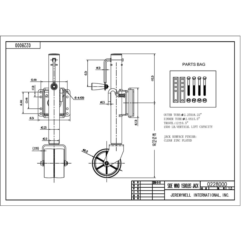 - Includes: 1 x Trailer Jack; 1 x Parts Bag