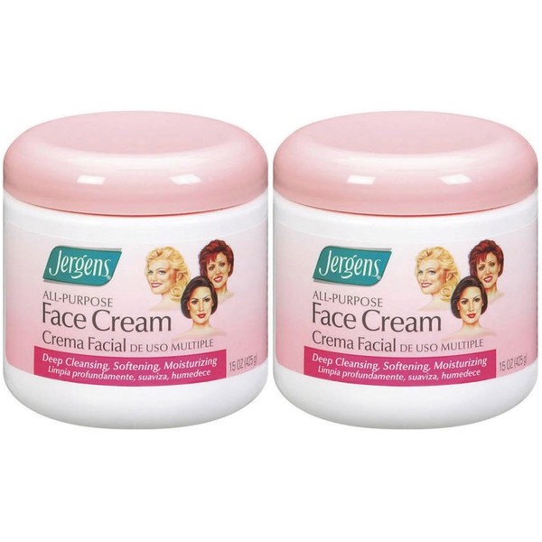 Jergens All Purpose Face Cream, Deep Cleansing Facial Cream, Makes Skin Smooth and Vibrant, 15 Ounce (Pack of 2)