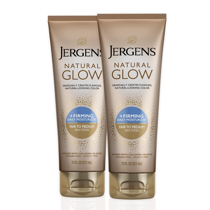 Jergens Natural Glow +FIRMING Self Tanner Body Lotion, Fair to Medium Skin Tone, Sunless Tanning Moisturizer with Collagen and Elastin. Helps to Visibly Reduce Cellulite, 7.5 Fl Oz (Pack of 2)