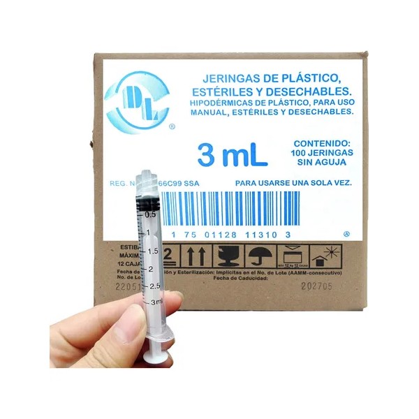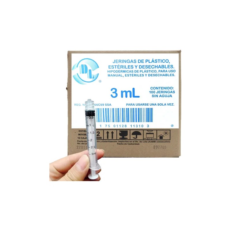 Jeringas 3ml Esteril Sin Aguja Marca Dl C/ 100pz Capacidad en volumen 3 cc