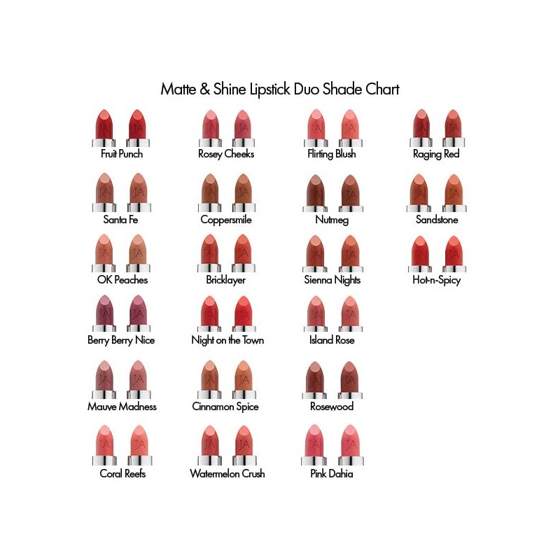 - 1 color, 2 gorgeous finishes - matte and shine - in each lipstick duo
