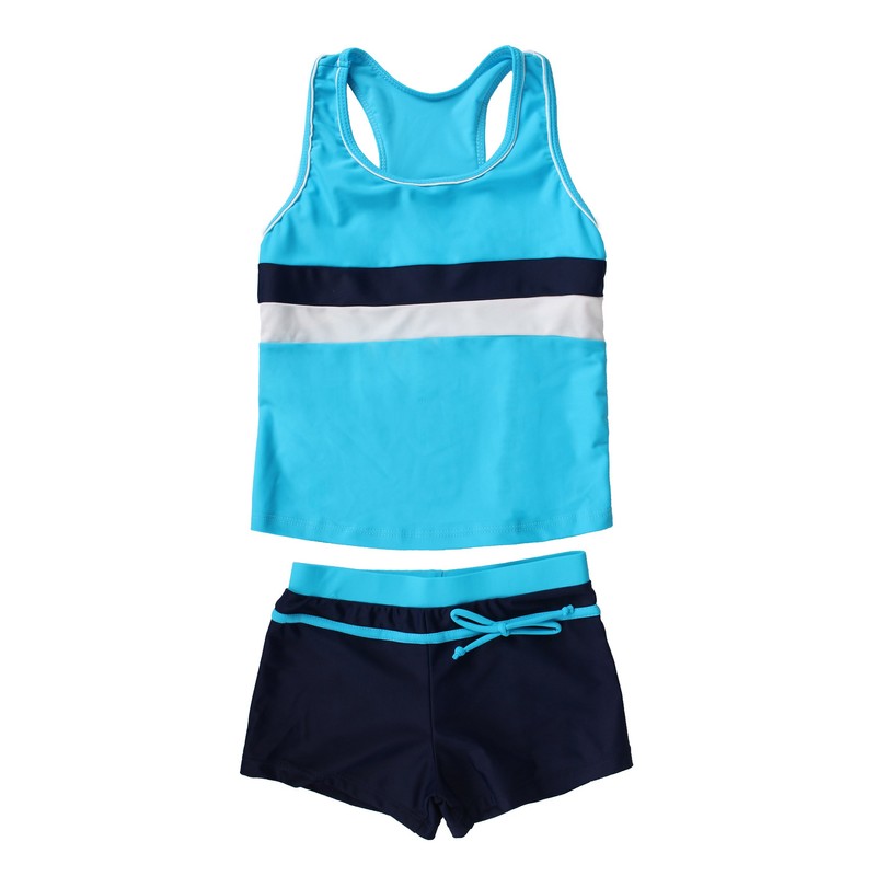 JerrisApparel Traje de baño de dos piezas para niña pequeña, Azul / Patchwork, 14-15 Años