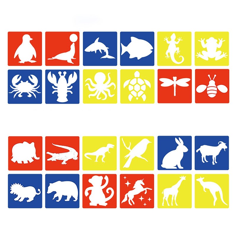 - ✔️SUITABLE SIZES FOR KIDS: 8 x 8 Inch designed animal style stencils are suitable for kids hand to grasp and handle. Sea animal themed stencils shapes include sharks, turtles, Penguin, octopus, etc. Land animal themes include rabbits, horses, grizzly bears, crocodiles, kangaroos and more.