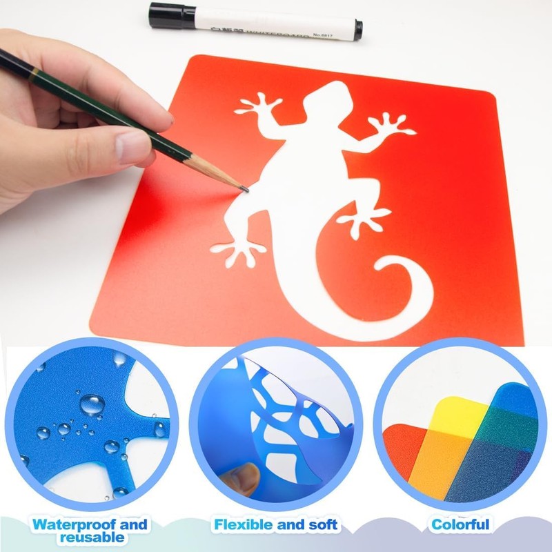 - ✔️WASHABLE AND REUSABLE: Our animal style painting drawing stencils are made of quality PET material, safe and strong, reliable and reusable, wear resistant, not easy to deform or break, its surface touch smoothly without burrs, which is safe for you to use repeatedly for a long.