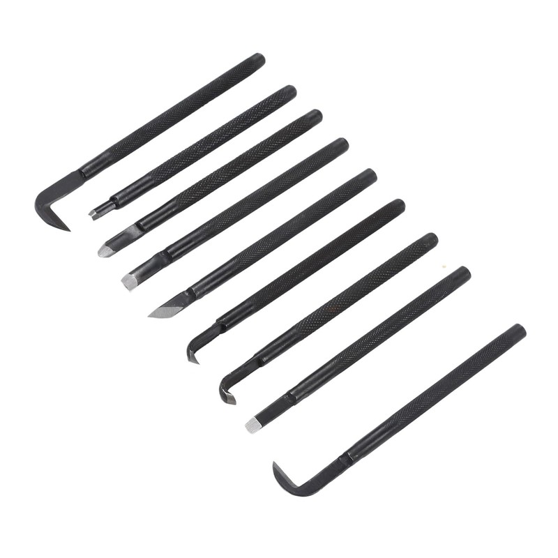 2. 9 Tools in Total: Including arc carving knife, carving knife, left and right hand peeling knife, pointed arc carving knife, flat carving knife, pointed brushed knife, arc brushed knife, bevel multi purpose knife to meet different work needs.