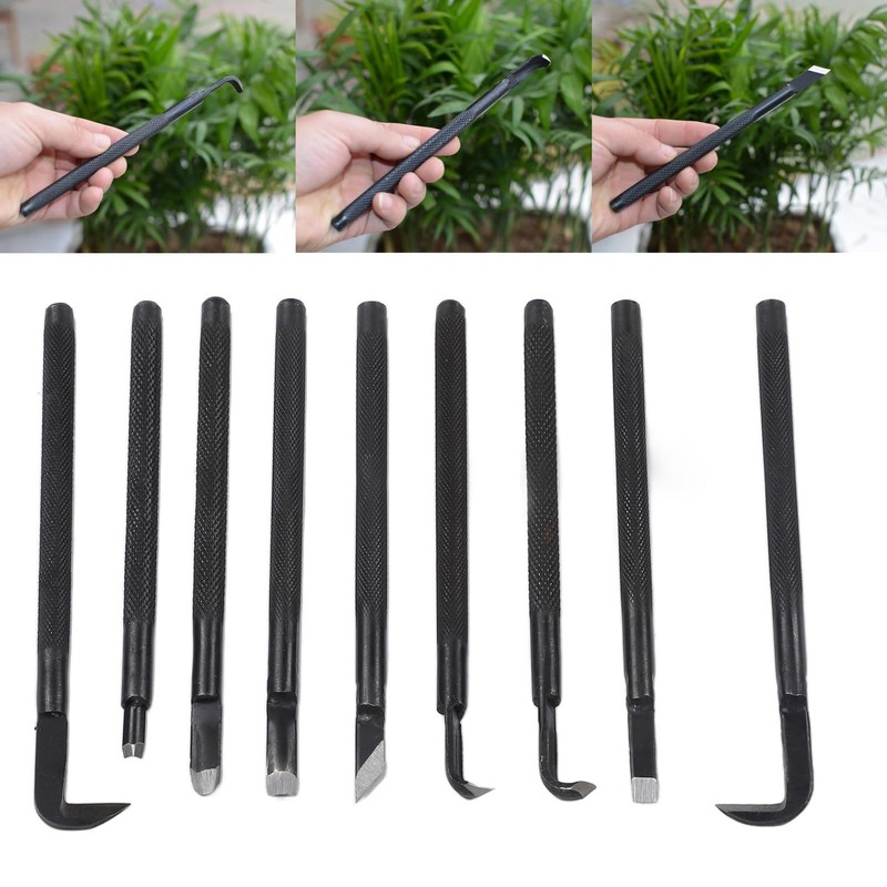 jerss 9Pcs Bonsai Tree Tool Set Drawing Knife Shaping Scraping Handle Wood Carving Tools Pruning Carving Knife Garden Bonsai Manganese Steel for 9 Pieces for Outdoor Garden Bonsai for Carved Wooden
