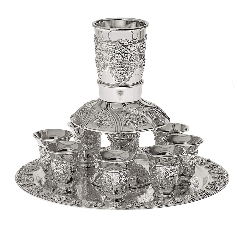 Jerusalem Motifs Silver Plated 6 Cup Kiddush Wine Fountain