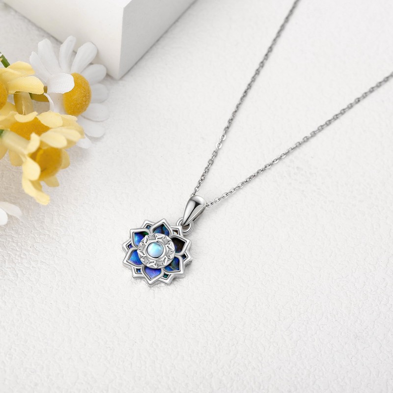 - Adorable Design:This sterling silver lotus necklace with a moonstone center and abalone shell petals is designed with a rotating feature to help relieve anxiety and promote relaxation. It is a gift of serene calmness and peace, offering moments of tranquility and well-being.