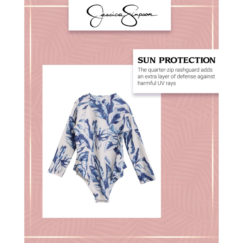 - OFFICIALLY LICENSED JESSICA SIMPSON: Baby Girls' One Piece Quarter Zip Rashguard Swimsuit; Looks to layer from day to night