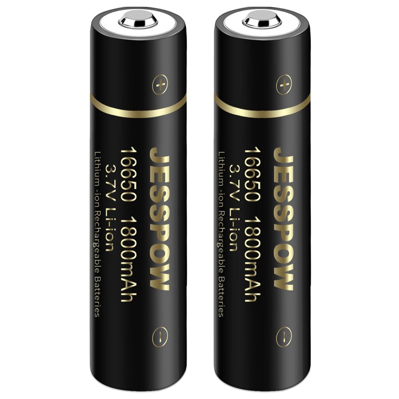 JESSPOW 16650 Rechargeable Battery, 16650 Battery 1800mAh 3.7V Li-ion Rechargeable Battery with Button Top for Flashlights Torches - 2 Pack